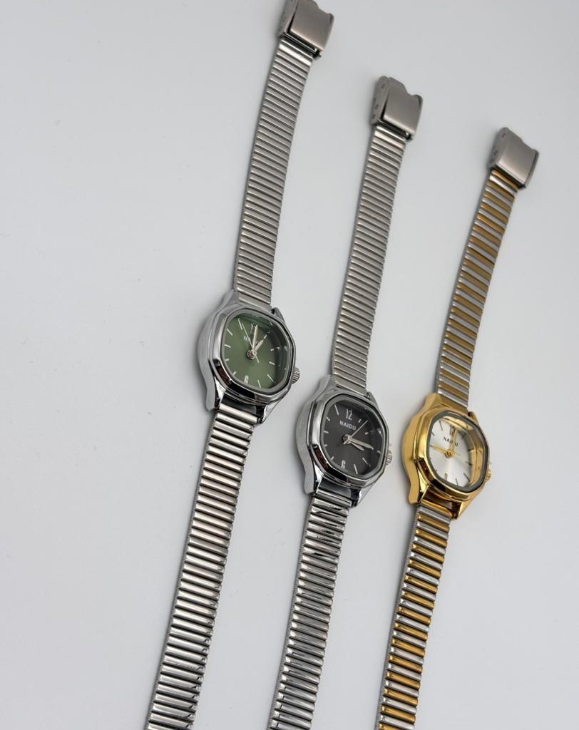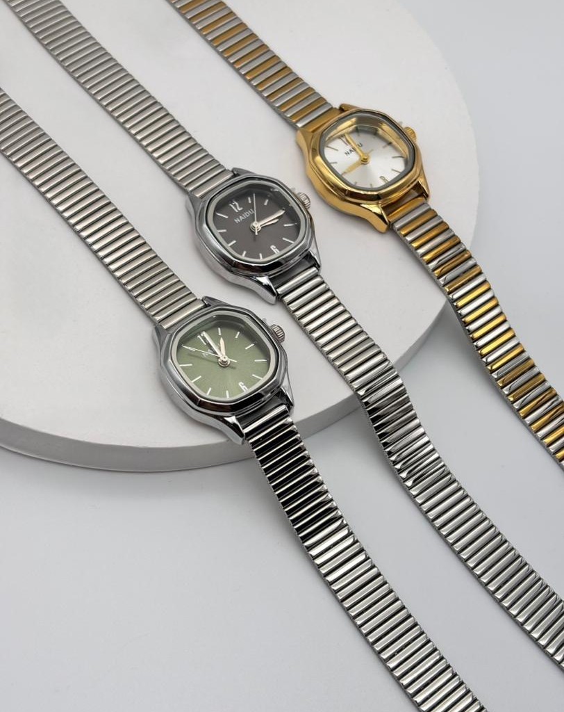 ساعت مچی با صفحه مربعی و بند فلزی کلیپسی، طراحی کلاسیک و شیک دارد و برای استفاده روزمره و رسمی و مهمانی گزینهای جذاب و راحت است