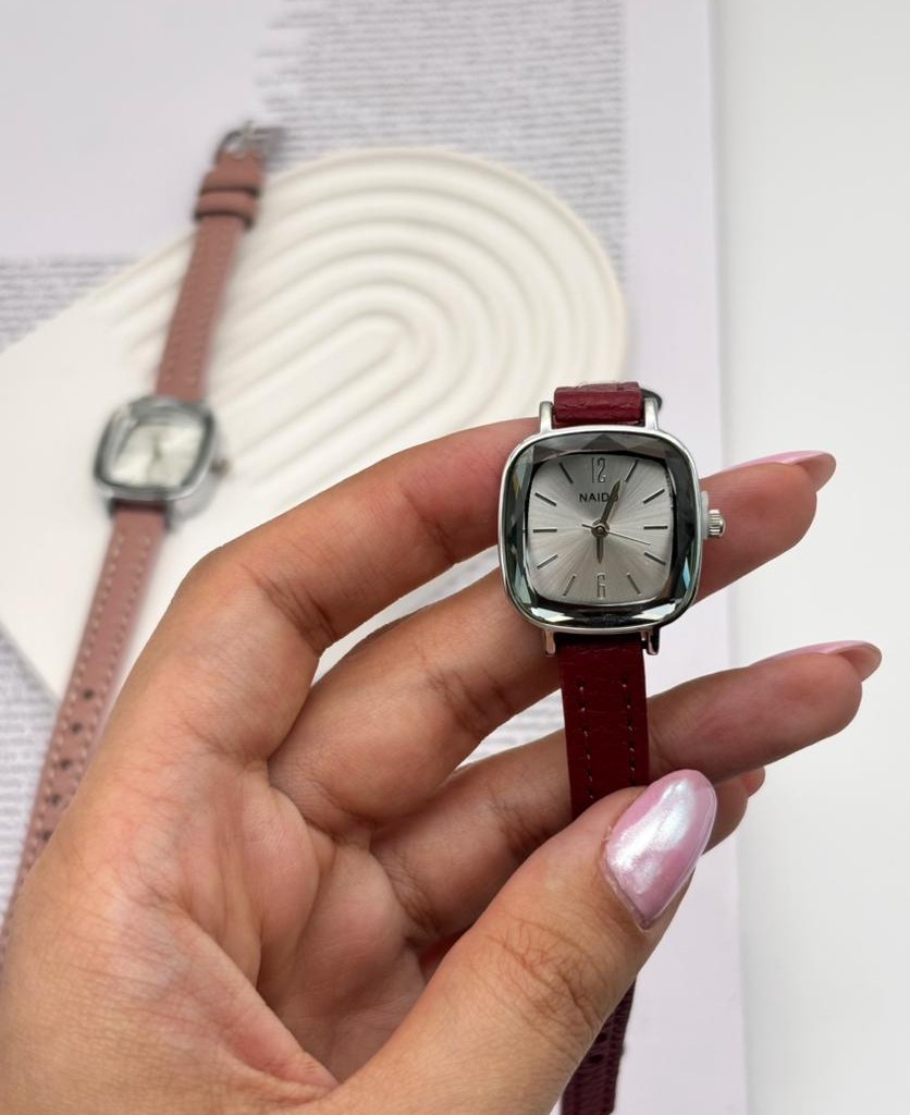این ساعت مچی با صفحه مربعی و بند چرمی، طراحی ساده و شیکی دارد که برای استایلهای روزمره بسیار مناسب است .