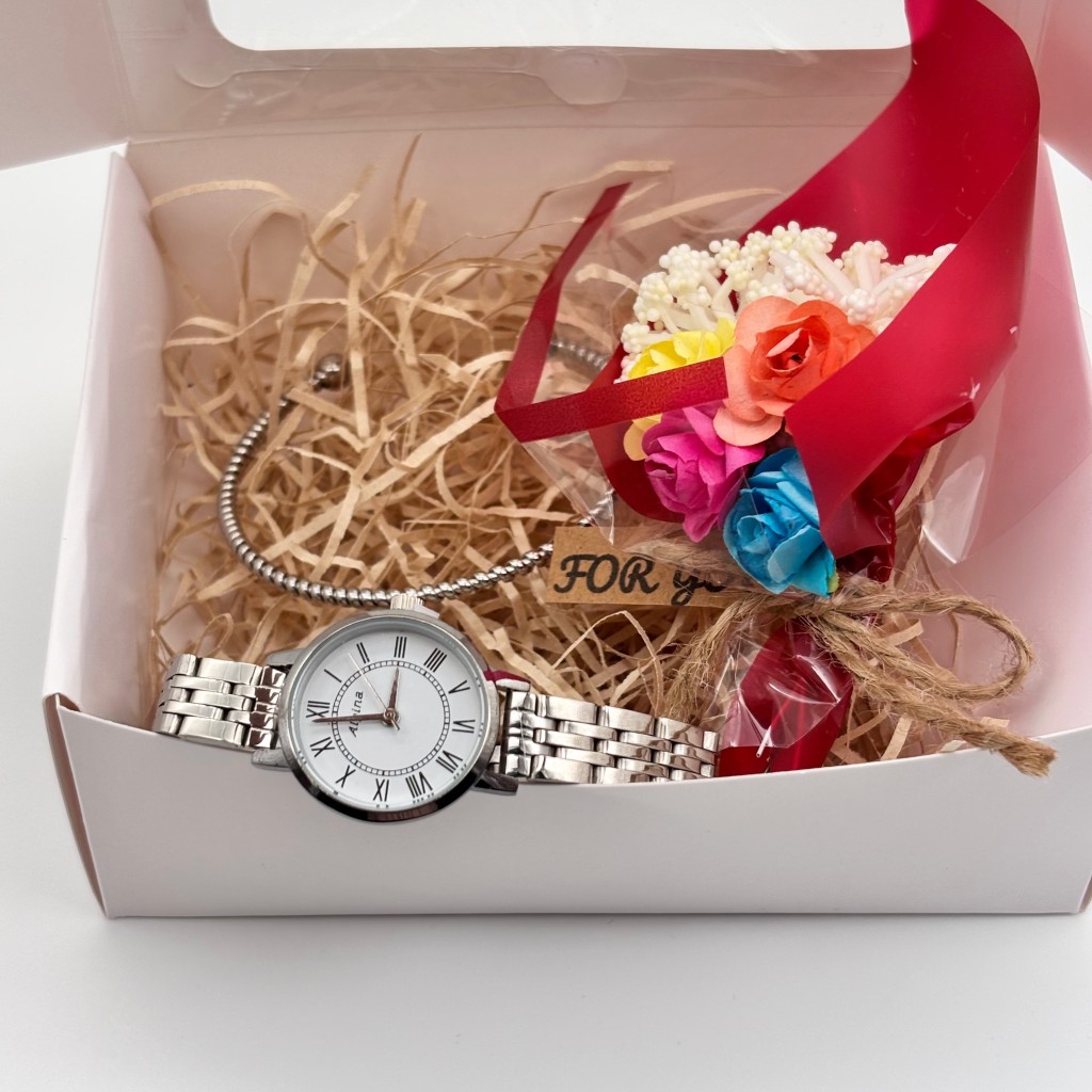 پک هدیه شامل ساعت بند فلزی با کیفیت عالی و دستبند ؛ یک انتخاب شیک و آماده برای هدیه دادن یا تکمیل استایل روزمره. طراحی لوکس و جذاب که هر کسی را خوشحال میکند.