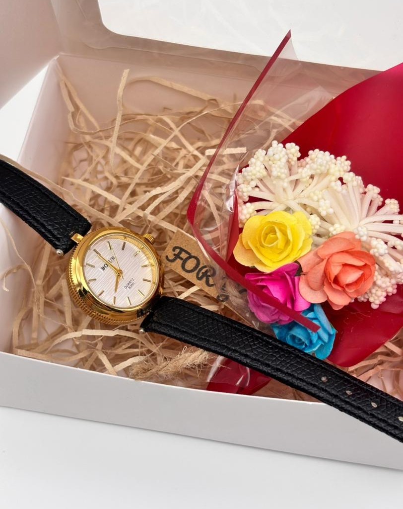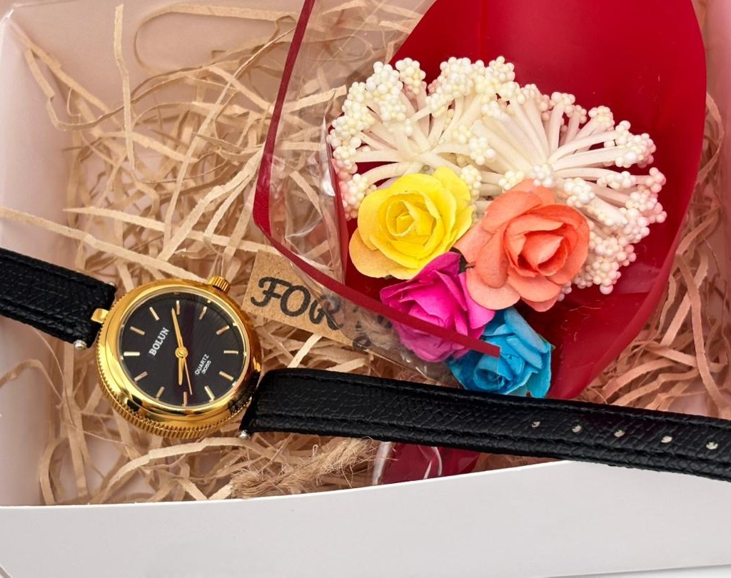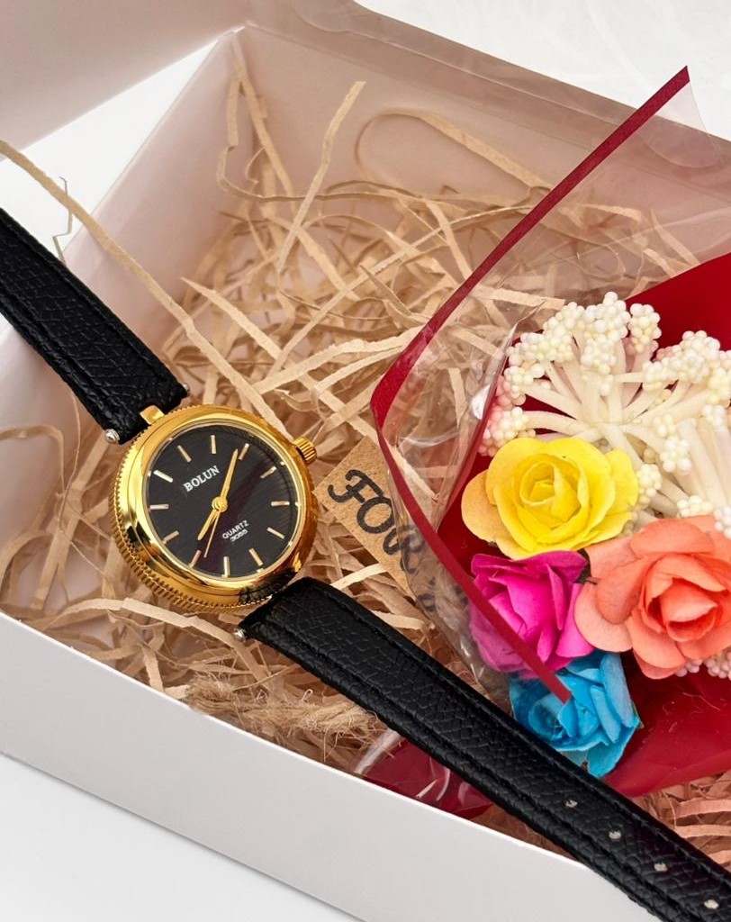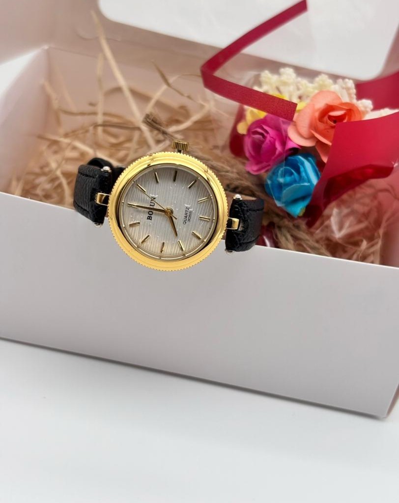 ساعت بند چرمی با صفحه گرد بالون با قاب طلایی؛ طراحی ظریف و کلاسیک. این مدل با پک هدیه ویژه روز مادر عرضه میشود و یک انتخاب ماندگار و ارزشمند برای عزیزترین فرد زندگی شماست